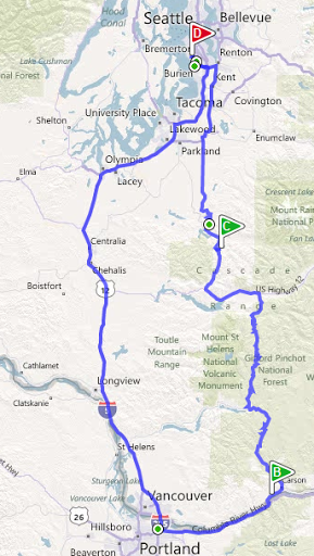 Sunday morning we met up for breakfast and then headed our separate ways, they were headed back to I-5 and heading North. I was heading up Wind River Rd, onto NF90, NF25, Curvy Creek Rd and so on. The names of the roads were VERY appropriate. Luckily, there wasn’t very much traffic for most of this journey in the morning. I must warn you though, there is nothing between Carson and Randall except for one store. It was long, winding, exciting, and a bit nerve-wrecking. The entire time I was on this route I thought to myself how much more fun this would be in a sports car. I ended up turning off the stereo and just listening to the car, the tires as they went from turn to turn, the exhaust note as it changed. It was amazing. Shortly after I passed the exit to Mt. St. Helens, here comes a Ferrari F430 Scuderia flying up the road going the other direction, I couldn’t help but smile. Seconds later as I was approaching a left hand turn here’s a Maserati Gran Sport hanging onto his lane with some tenacity. Seconds after that was a BMW M3, Porsche 911, and older Porsche, and a Benz. They unfortunately were stuck behind a much slower moving vehicle. This road didn’t have many passing areas so when you have a chance to pass, you have to take it.