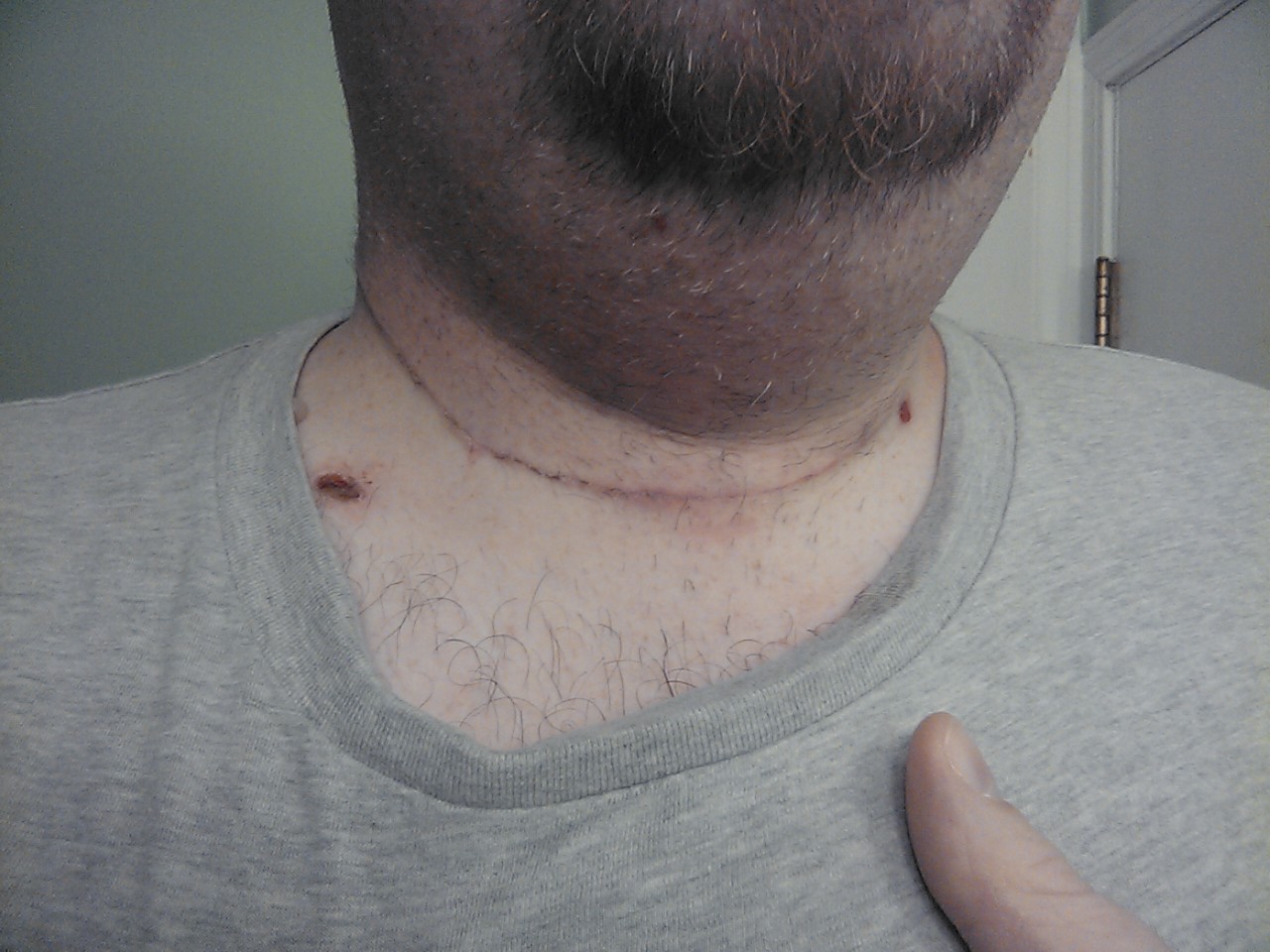 Many doctor appointments, radiation treatment, isolation, terrible low-iodine diet, tiredness, confusion, CT scans, whole body scans, aches, pains, ultrasounds, urgent care visits, blood draws, blood draws, and more blood draws. An awesome, heartwarming fundraiser (I’ll never forget each and every one of you), an awesome birthday get-together during that damn diet that included low-iodine food at Myra and Kenji’s place, support group meetings, and here I am, 80+ lbs. lighter and Cancer Free. 9 months later.